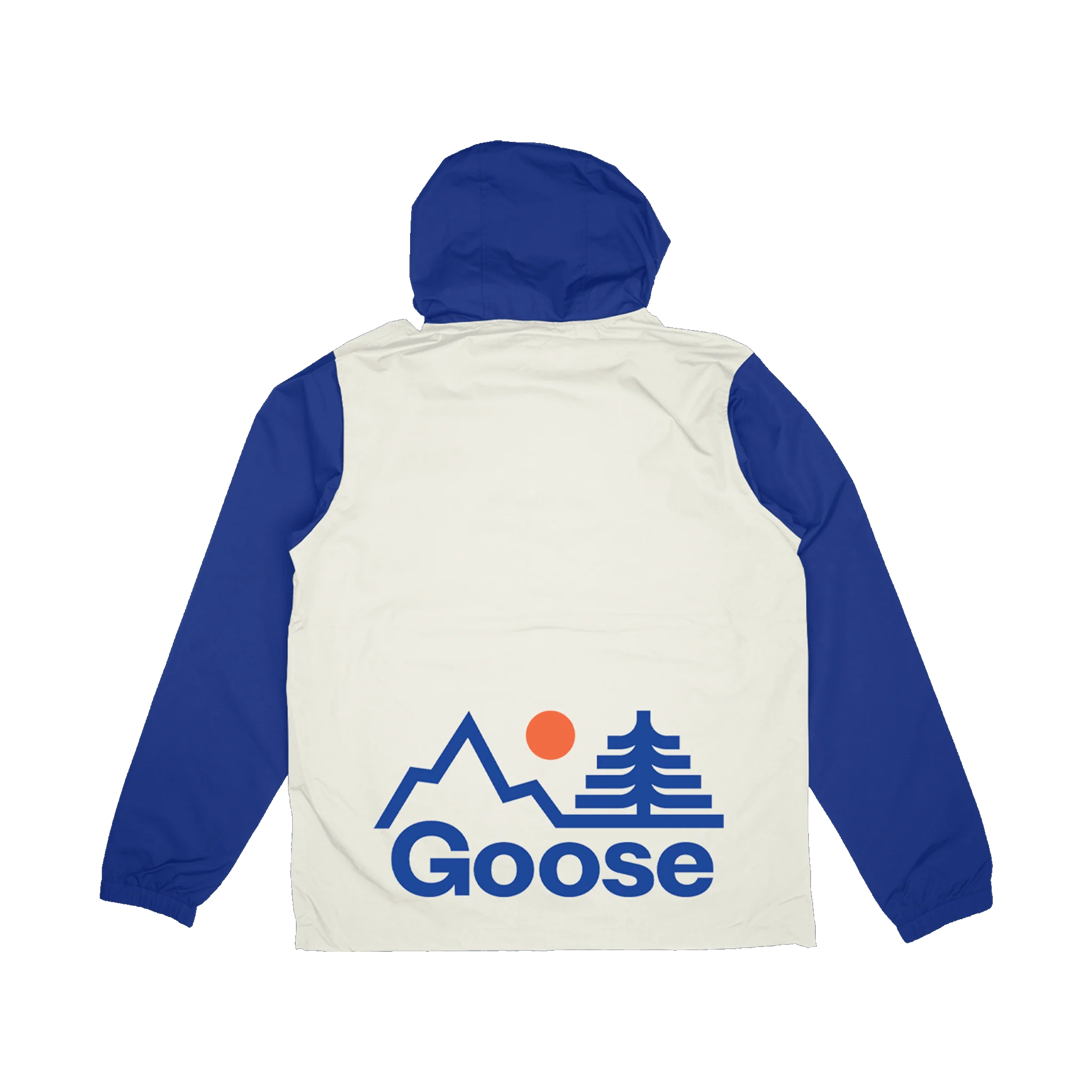 Custom nylon anorak with PVC patch detailing at left chest and screen printed graphic on the back.
