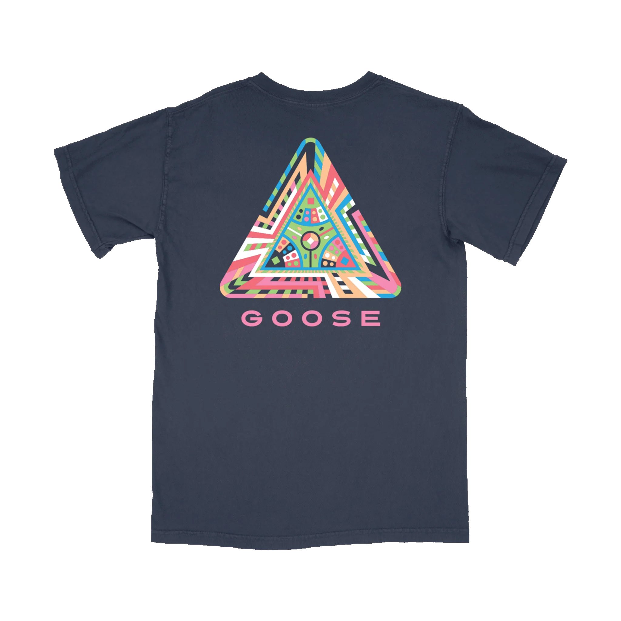 Classic "Jivangle" design by Pseudodudo, printed on the front and back of a 100% cotton blue, heavyweight garment-washed t-shirt.